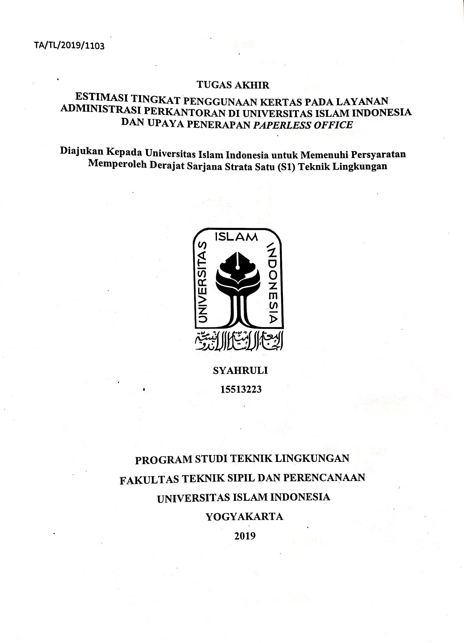 Estimasi Tingkat Penggunaan Kertas pada Layanan Administrasi Perkantoran di Universitas Islam Indonesia dan Upaya Penerapan Paperless Office