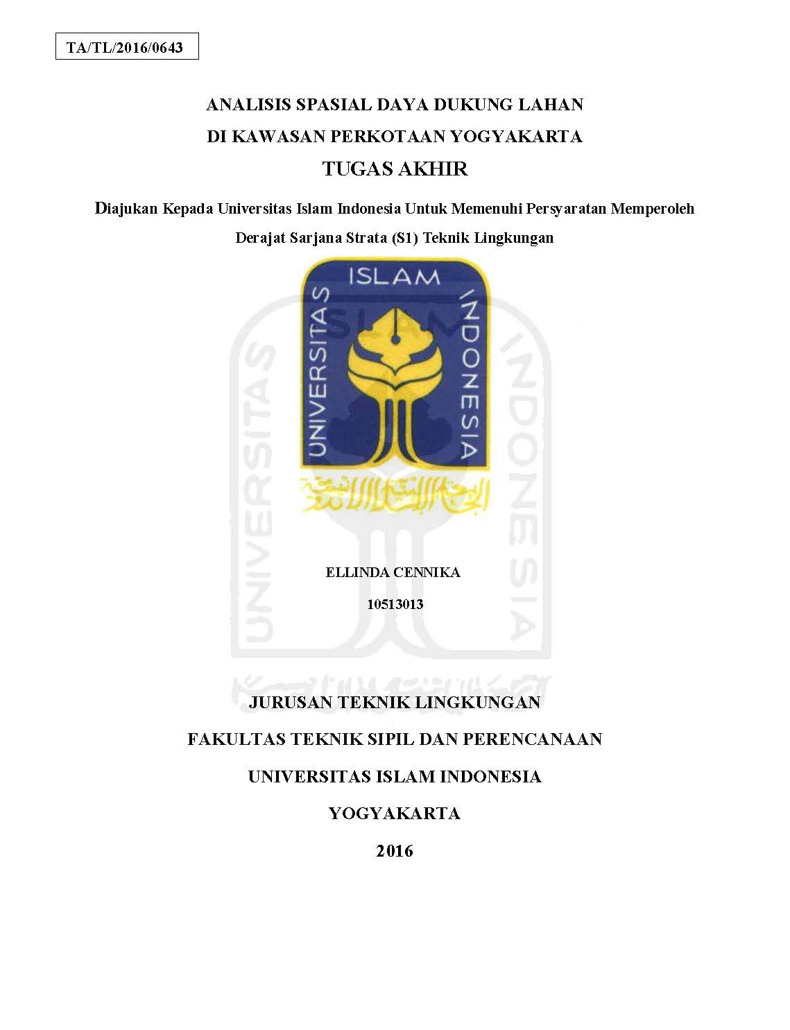 Analisis Spasial Daya Dukung Lahan di Kawasan Perkotaan Yogyakarta
